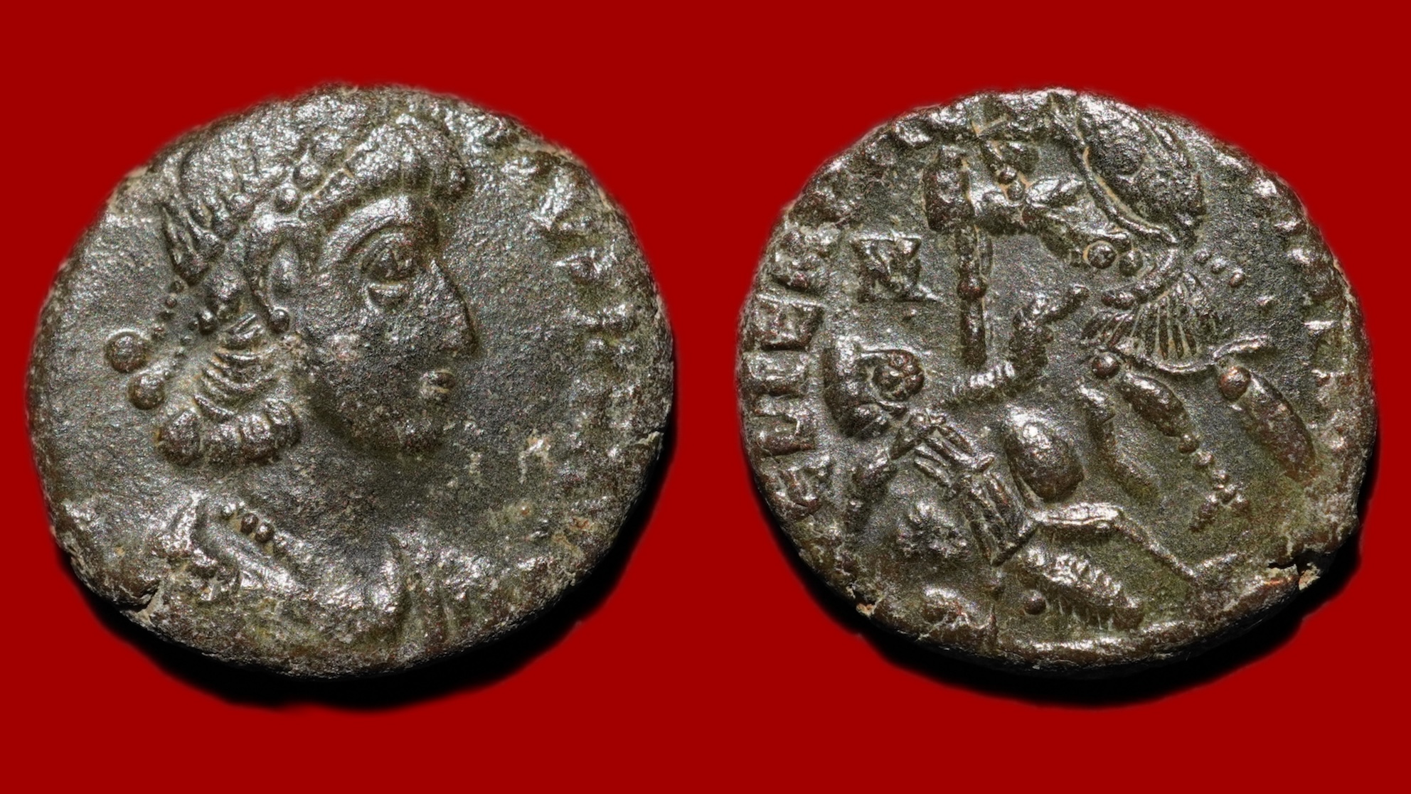 Demi Maiorina de Constance II (337-361 ap J-C), 15mm, 2.59g, en cuivre.