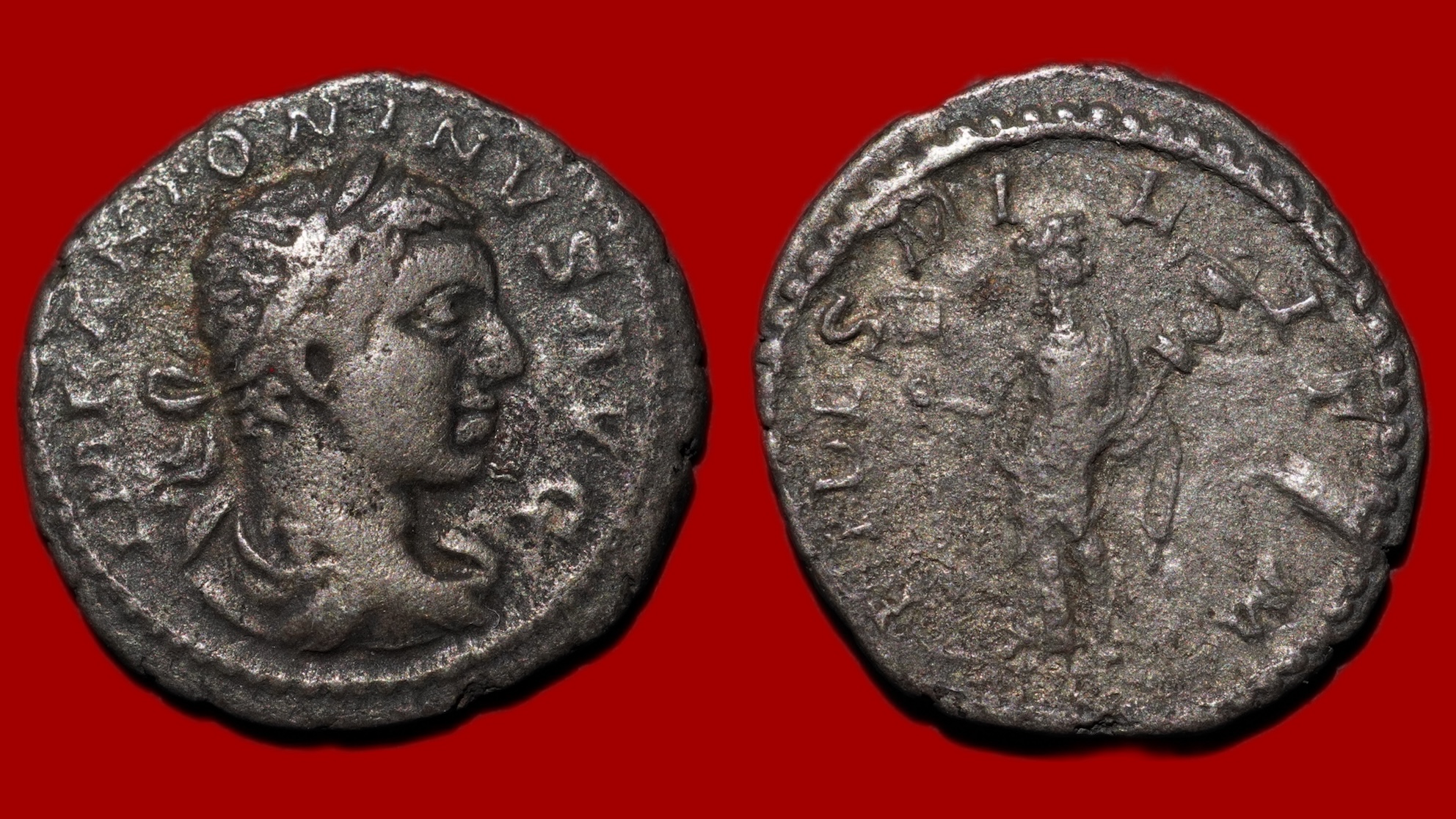 Denier d’Elagabal (218-222 ap J-C), 19mm, 2.45g, en argent (500‰).