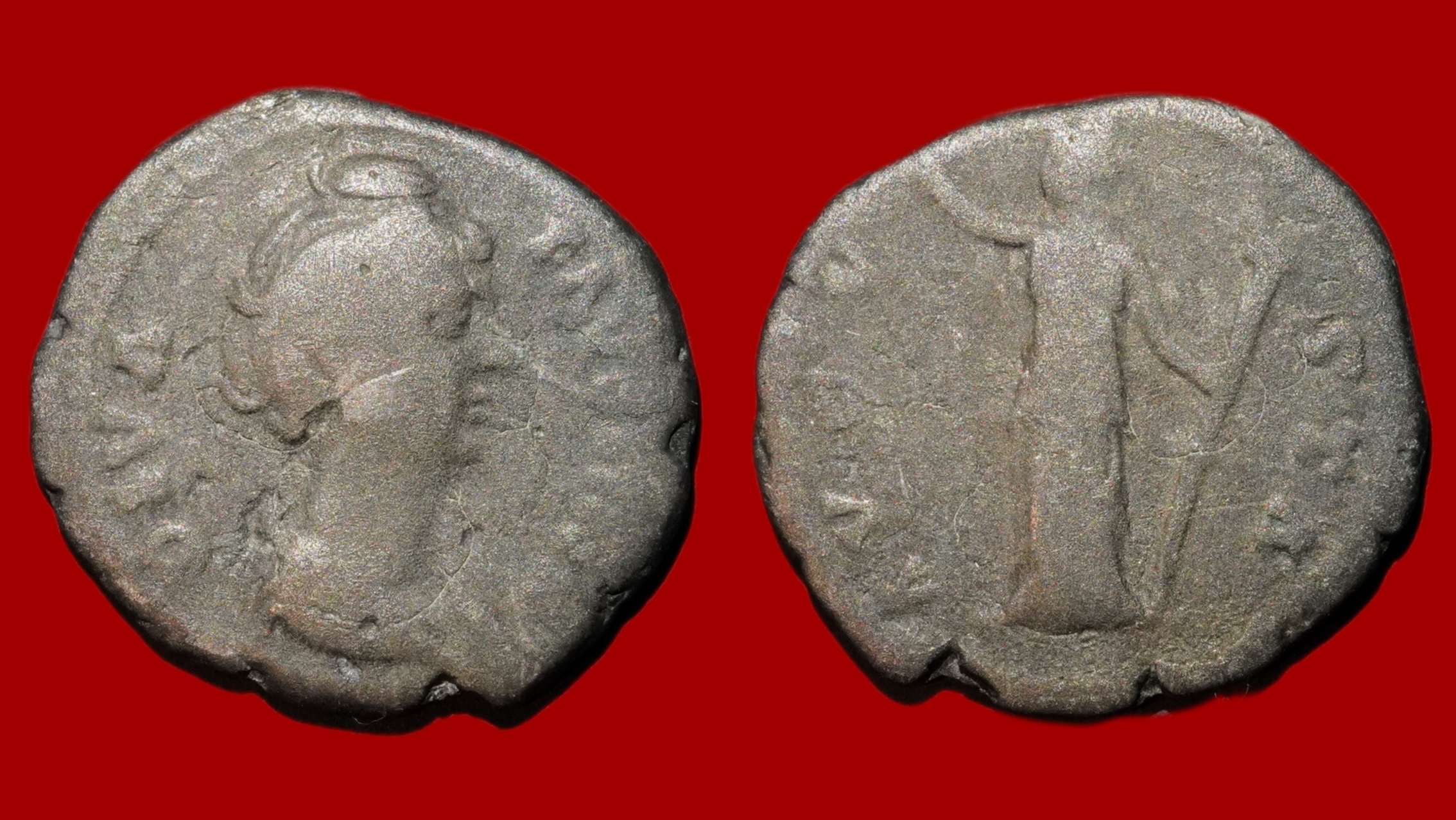 Denier de Faustine Mère (138-140 ap J-C), 18mm, 2.67g, en argent (faible titre).