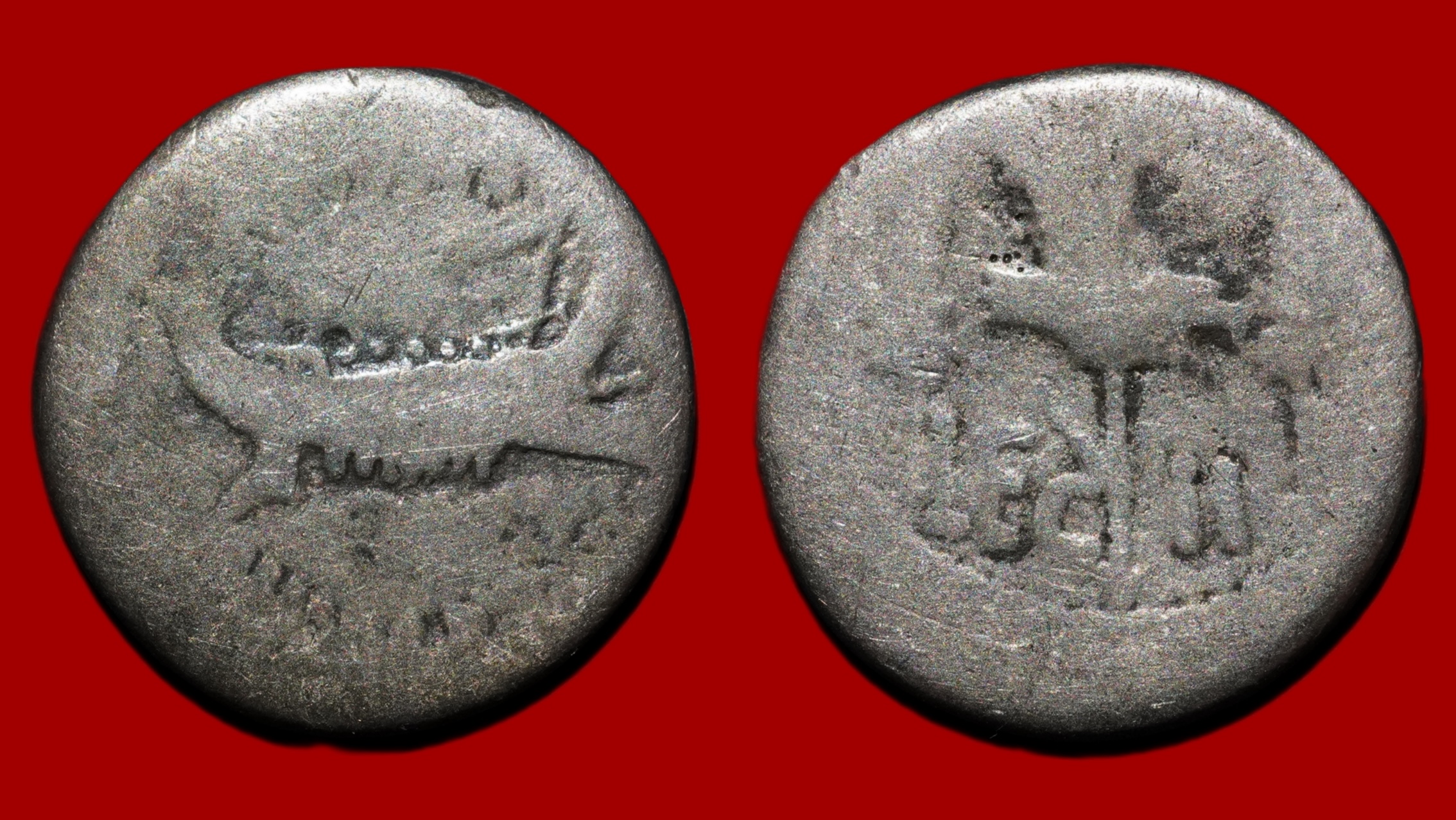 Denier des légions (IIème) de Marc Antoine, (32-31 av J-C), 17mm, 2.78g, en argent.
