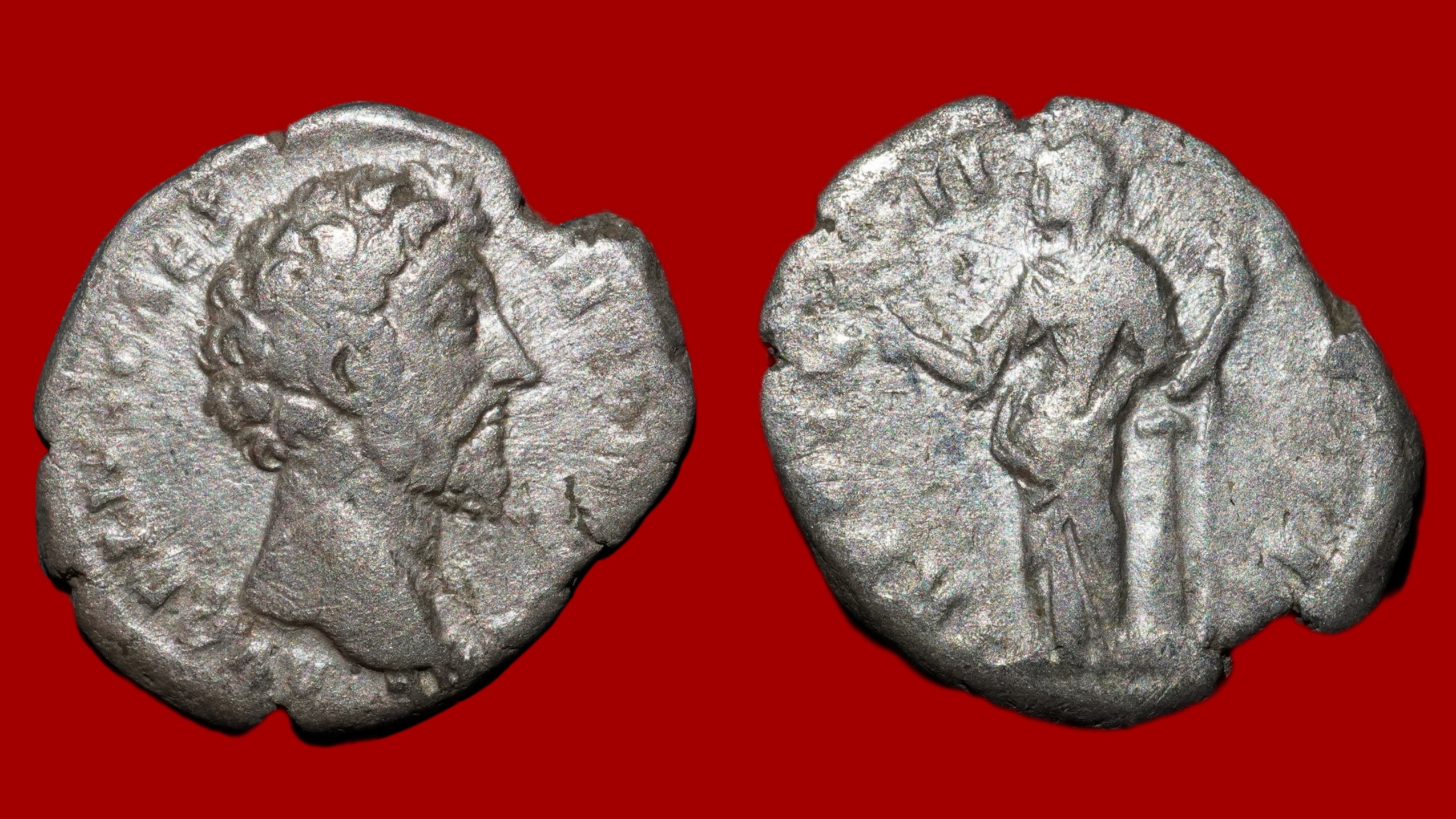 Denier de Marc Aurèle (161-180 ap J-C), 17mm, 3.00g, en argent (fourré).