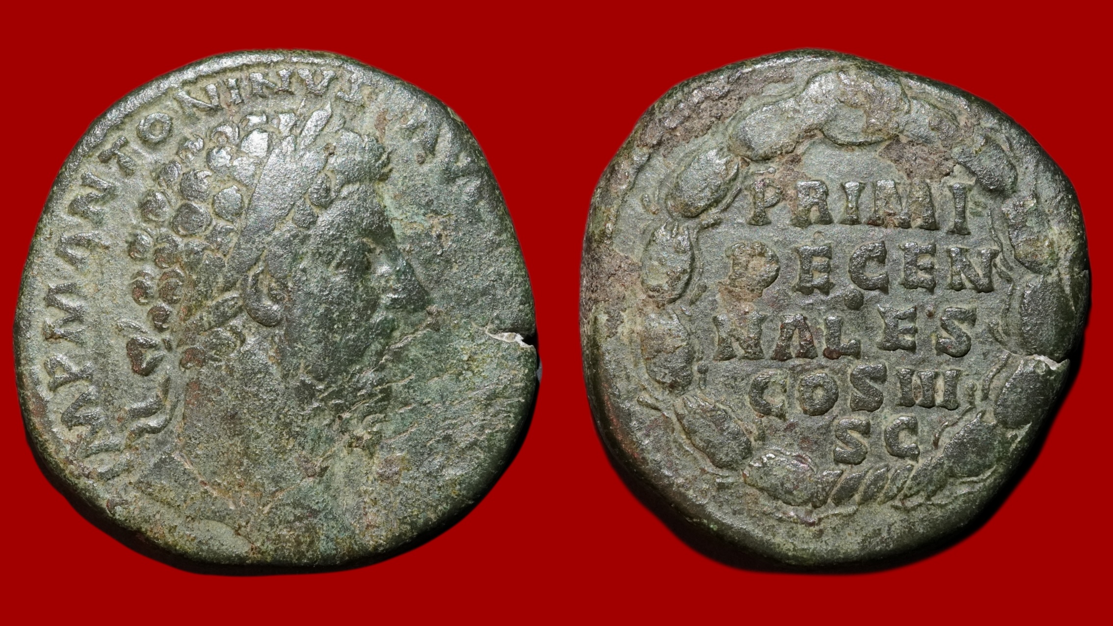 Sesterce de Marc-Aurèle (161-180 ap J-C), 30mm, 24.58g, en cuivre.