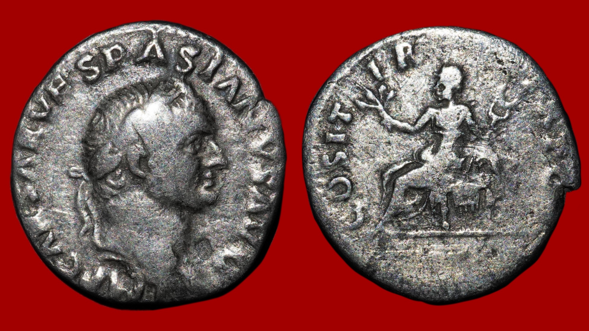 Denier de Vespasien (69-79 ap J-C), 17mm, 3.02g, en argent.